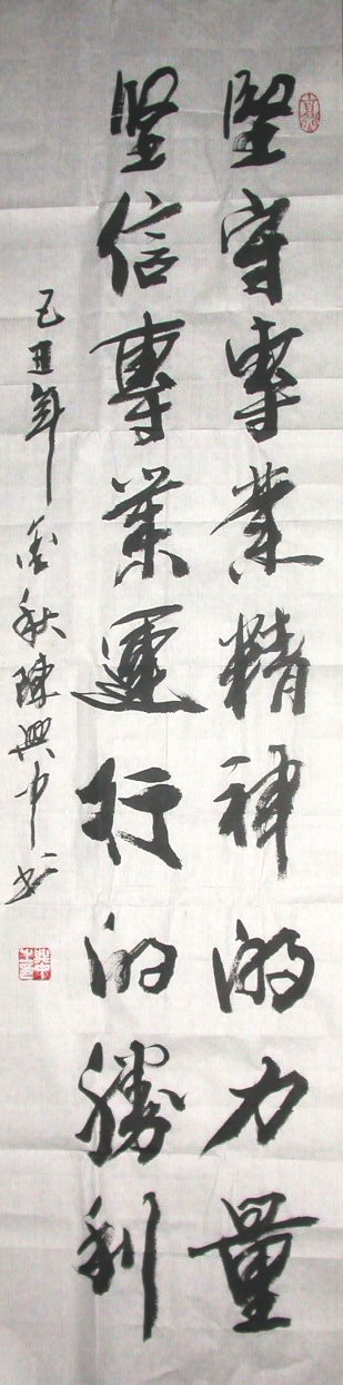 經(jīng)過不懈的努力和實(shí)踐,他終于掌握了用指的方法和規(guī)律,認(rèn)識到只有下手快而準(zhǔn),才能酣暢淋漓,一氣呵成。現(xiàn)在,他能蘸墨一揮寫下11個(gè)大字。