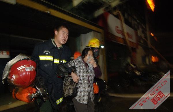 4月24日,消防人員將被困群眾從火災(zāi)現(xiàn)場救出。