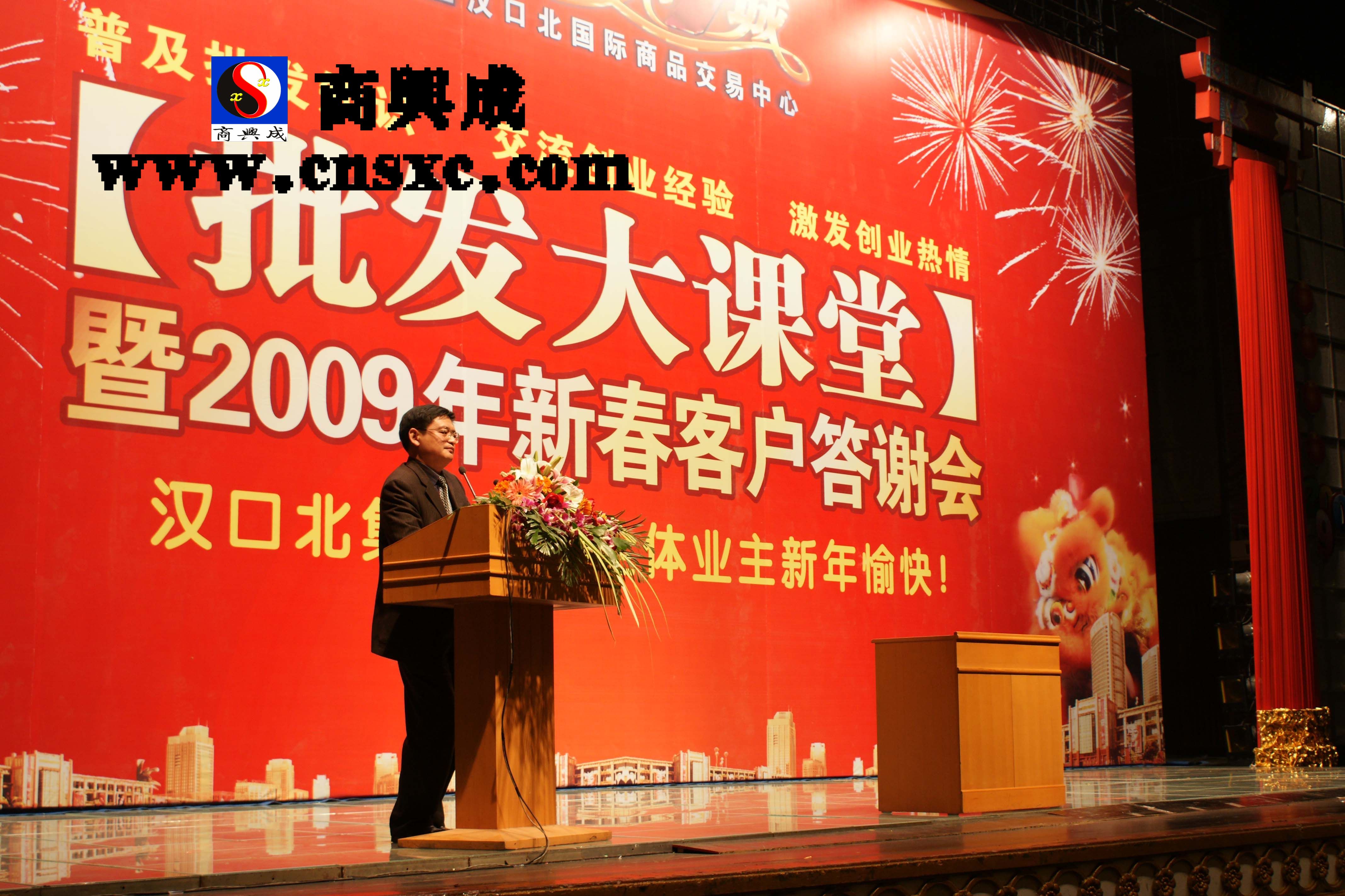 2009年1月19日,臨近春節(jié)的武漢劇院會(huì)議大廳春意融融。由卓爾企業(yè)漢口北集團(tuán)舉辦的“批發(fā)大課堂暨2009年漢口北批發(fā)第一城新春客戶答謝會(huì)”在此隆重舉行。中國(guó)著名批發(fā)市場(chǎng)研究專家、《走進(jìn)義烏》一書作者許慶軍先生首次在漢揭秘義烏批發(fā)市場(chǎng)的創(chuàng)富秘笈,吸引了2000余位武漢本地的批發(fā)商戶入場(chǎng)學(xué)習(xí)。許慶軍先生表示,武漢市正在進(jìn)入批發(fā)新時(shí)代,批發(fā)市場(chǎng)升級(jí)正當(dāng)其時(shí)!湖北省政協(xié)副主席鄭心穗、省工商聯(lián)主席趙曉勇等省市領(lǐng)導(dǎo)與會(huì)。